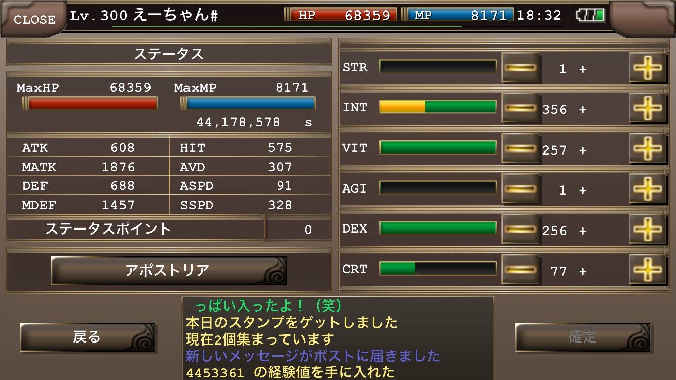 これは私が使っているハイウィザードのステータスの画像です。