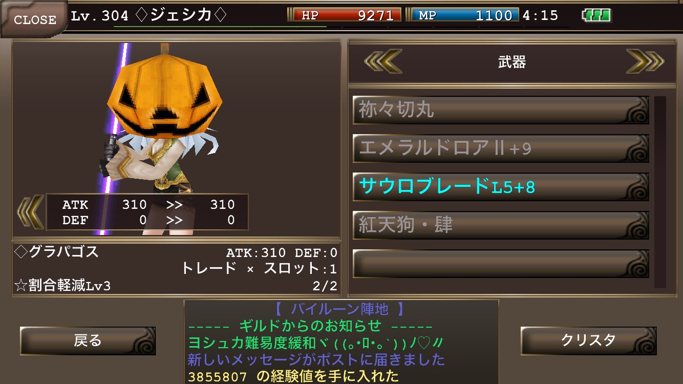 装備編 武器武器は剣になります。ピラーブレイドというスキルを利用して無限狩りをするため剣以外の武器ではピラーブレイド打てません。