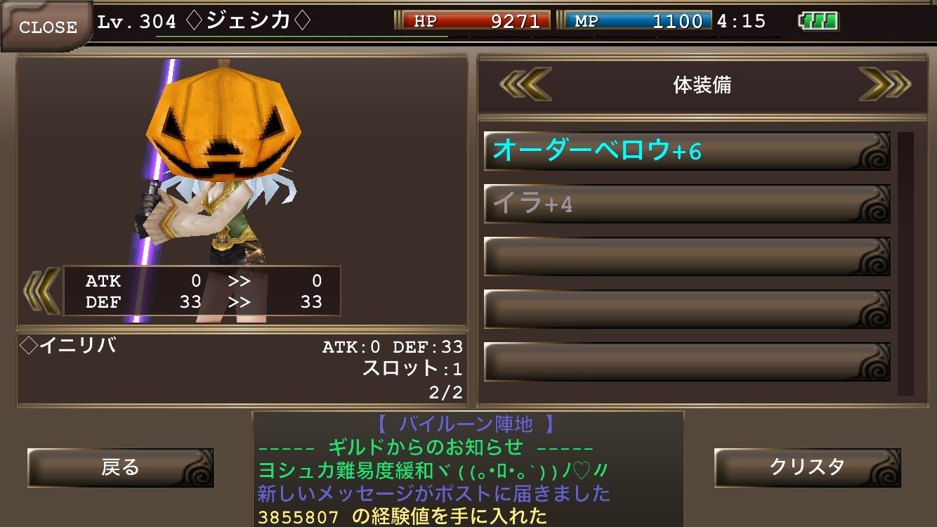 追加装備は再強化フォルスヘルムもしくわ強化モンティベレーです。