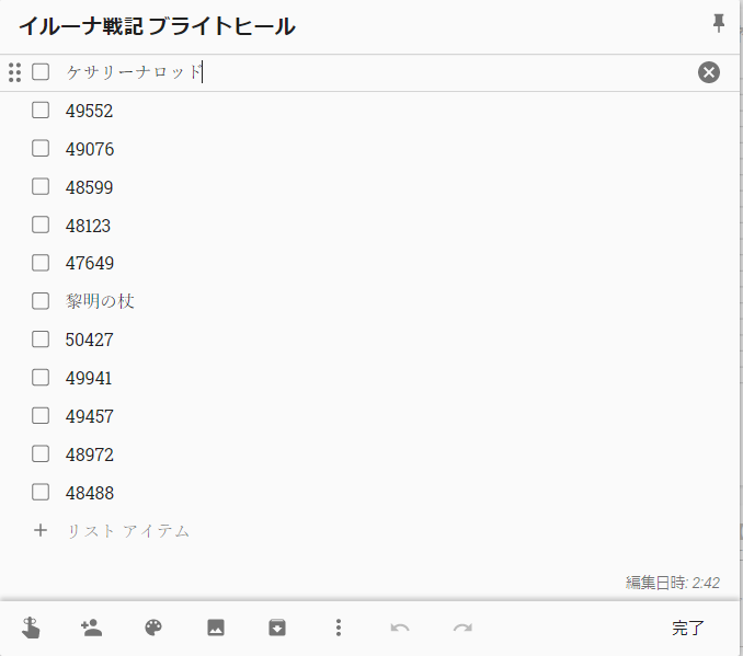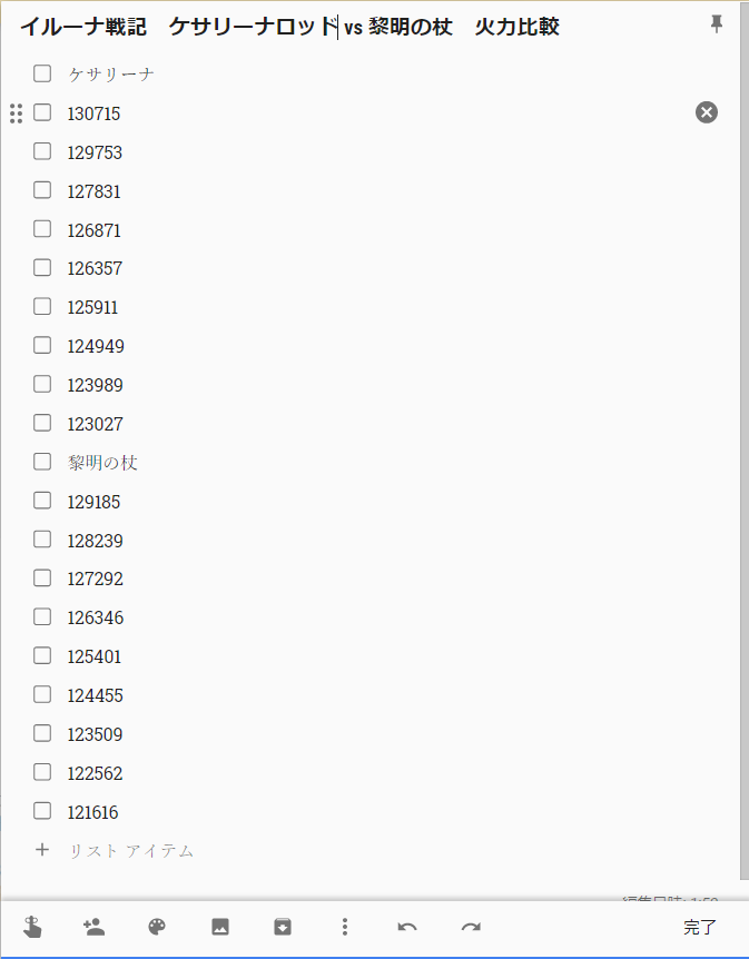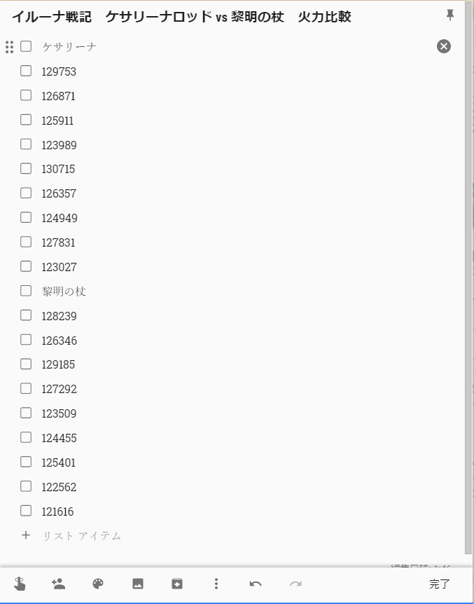 ダメージを記録するのに今回使ったのはGoogle Keepのチェックボックスモードです。ダメージを書き込んだ後自由に上下入れ替え、消去がとても簡単なのでオススメです。